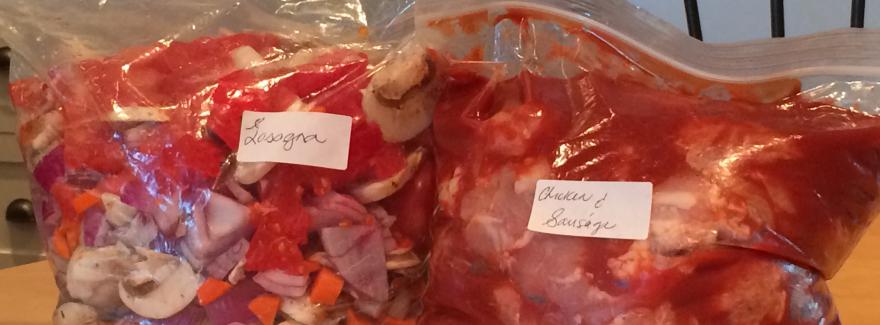 You can still prosper by buying a bunch of extra meat during a good sale if you prepare it for your recipe by cutting it up before freezing it. When the food prep day comes that you are ready to use it just add the veggies for your recipe into the bag, on top of the frozen meat.
