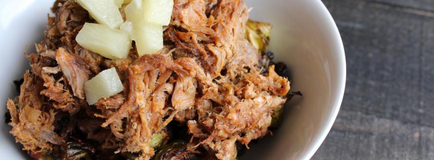 - Pour the canned or fresh pineapple and freshly grated ginger on top of the pork.