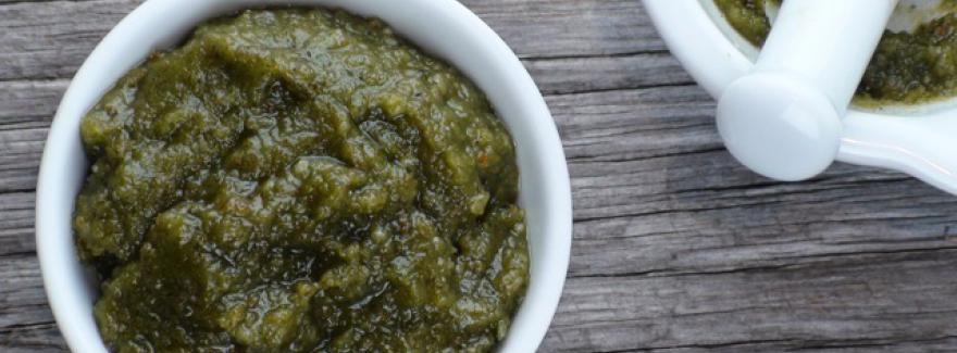 - In a food processor, combine basil, garlic, cheese and almonds, pumpkin seeds and oil.