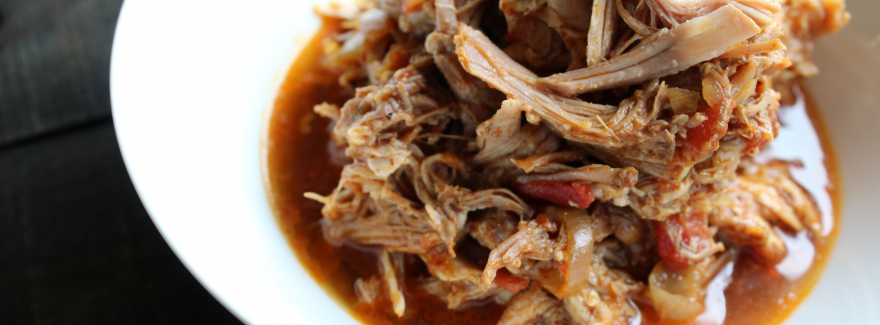 - Once the pork is cooked, gently pull apart the pork using 2 forks and combine with liquid.